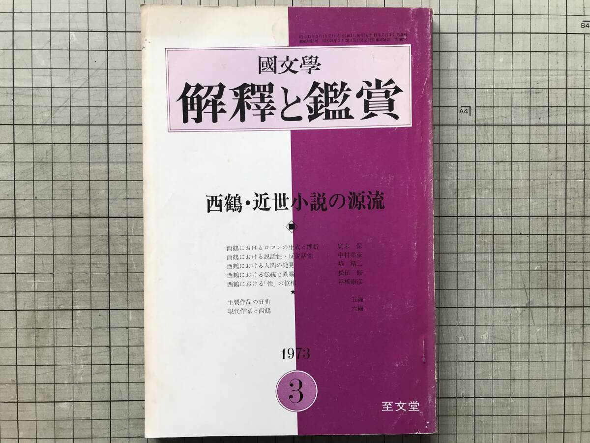 - 『国文学 解釈と鑑賞 第478号 第38巻第4号 西鶴・近世小説の源流』井原西鶴 好色一代男 廣末保・前田愛・小野晋 他 至文堂 1973年刊 10117