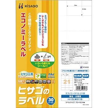 - メール便発送 ヒサゴ ELM011S エコノミーラベル 21面 (30シート入り)