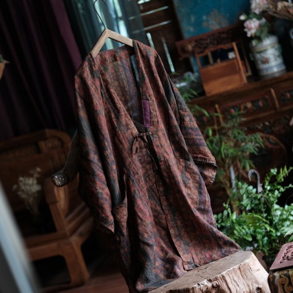 - lgn 2407 2185 袢纏 カーディガン チュニック アンティーク風 洋服ミックス ロマンファッション 苧麻100% 花柄 紫外線日焼け防止 バッチ