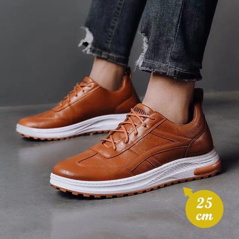 - 男性 靴 メンズ スニーカー 厚底 スポーツ ウォーキング シューズ 滑り止めブラウン25㎝