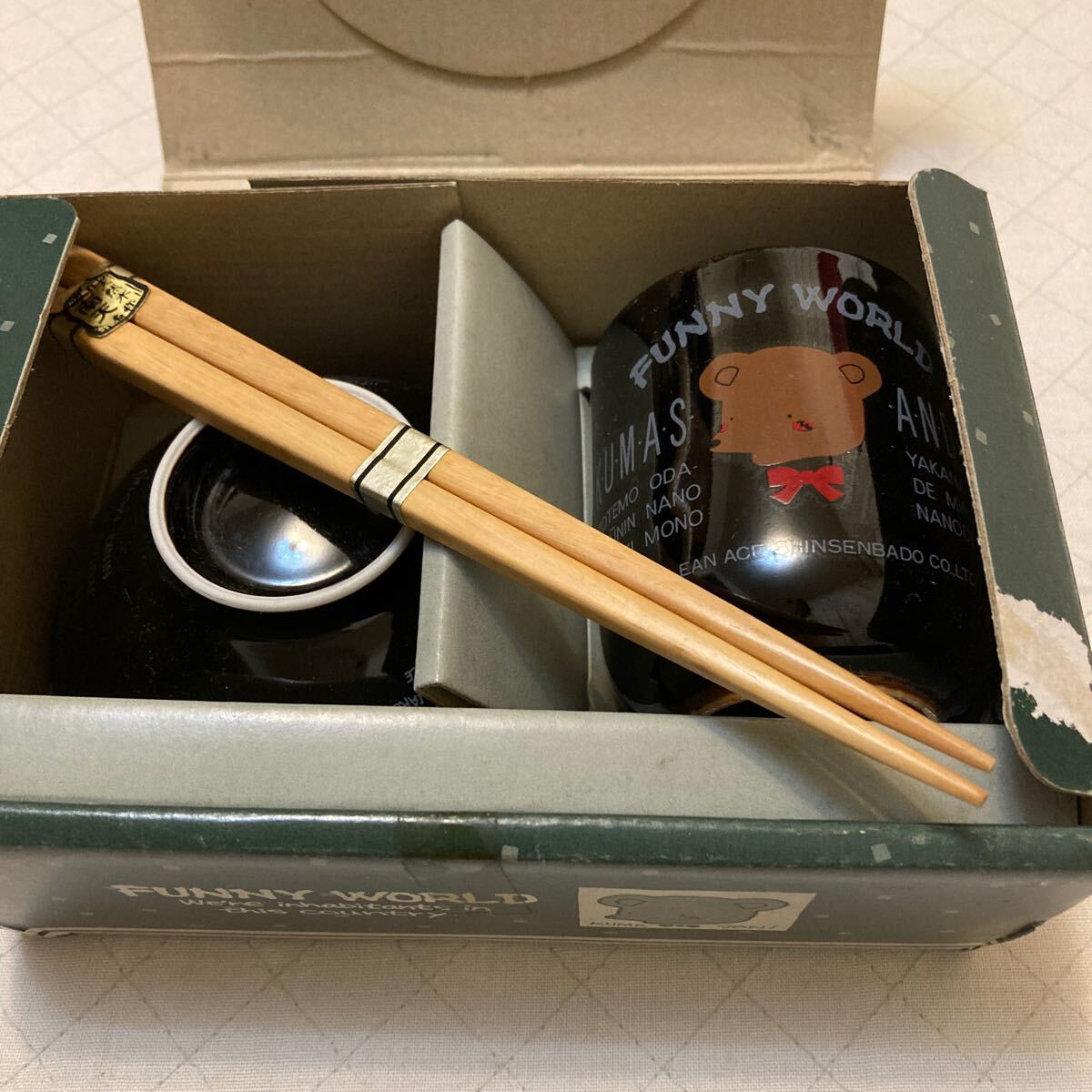 - ファニーワールド 茶碗 湯呑み 箸セット 箱入り 未使用 クマ 食器 昭和レトロ ローマ字表記 コレクション 子供用 食器にも 当時物