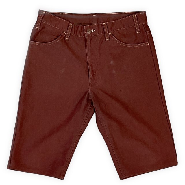 - 70's 米国製 リーバイス LEVI'S ポリエステル パンツ 10517-4628 丈上げでバミューダショーツ ハーフパンツ 茶 実寸W78 L30 [la-1009]