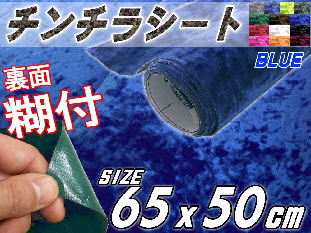 > チンチラ (小) 青 65×50cm裏面糊付きシート クラッシュベルベット生地ベロア椅子モケット張替えトラック内装デコトラ家具DIY補修ブルー 4