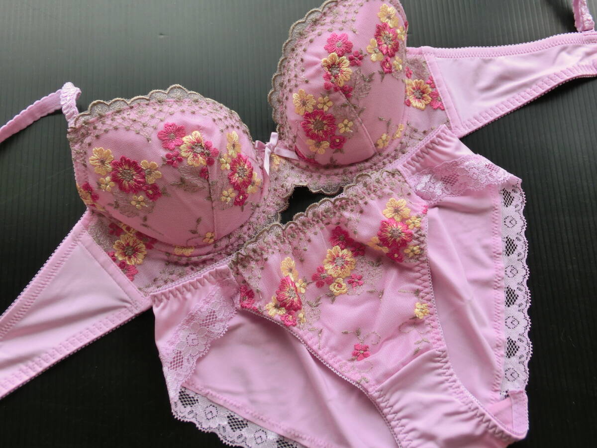 - ☆トリンプ【C75 L】ピンク フラワーブラジャー・ショーツセット(フラワーブーケ柄)《55-8》
