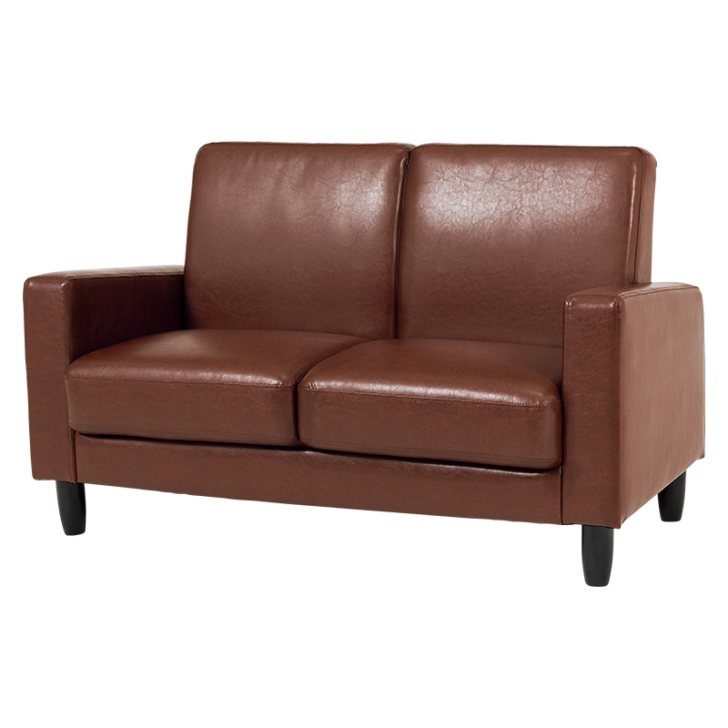 > 二人掛けソファ ブラウン色 ローソファ 合成皮革張り コンパクトサイズ 簡単組立て RITTU