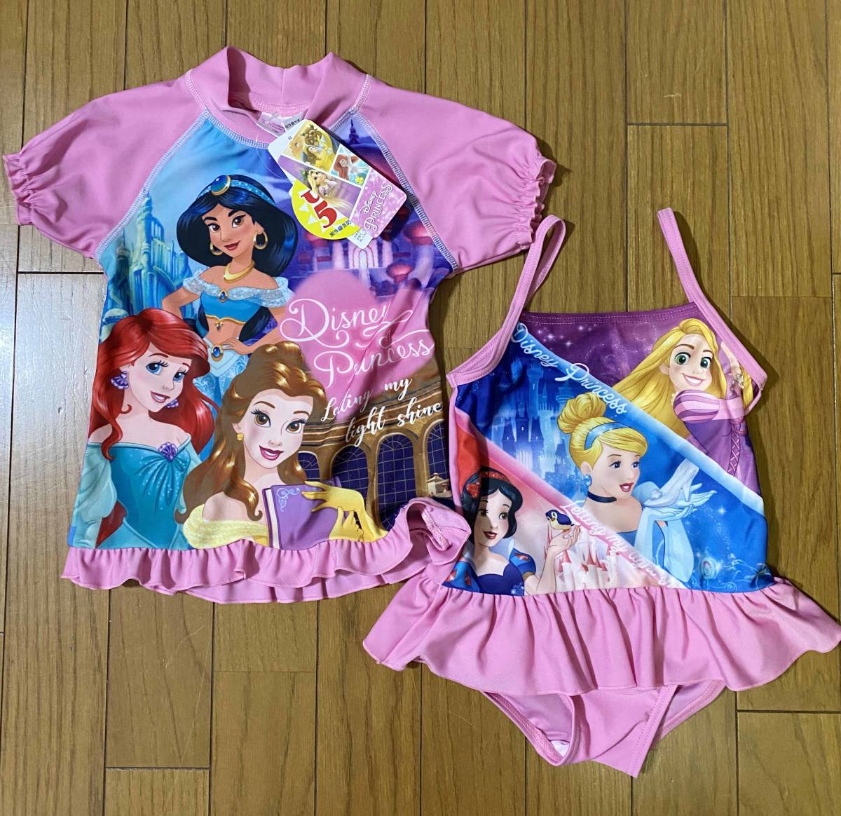 - 新品 95cm ★ ディズニー プリンセス 水着 ラッシュガード セット ガールズ コストコ UV加工 DISNEY ピンク フリル 95 100 90