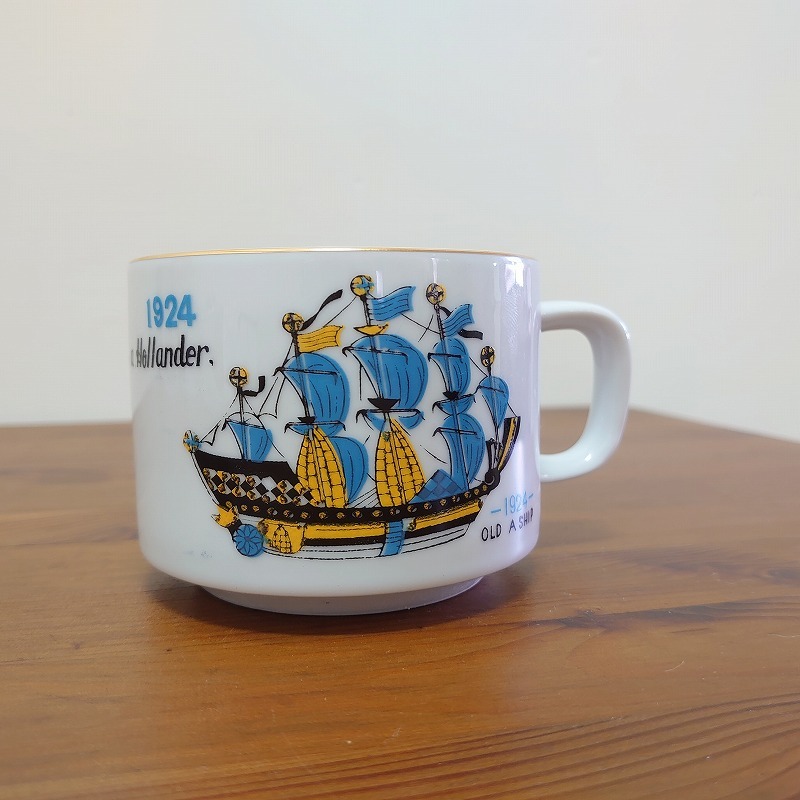 - 台湾レトロ◆大同製◆マグカップ 帆船 青/黄◆台湾食器◆ヴィンテージ
