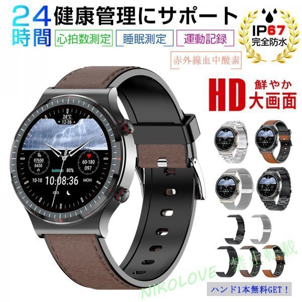 > 新品 スマートウォッチ メンズ レディース センサー 血中酸素 通話機能 心拍数 歩数計 腕時計 ワイヤレス充電 シルバー ステンレス LB304