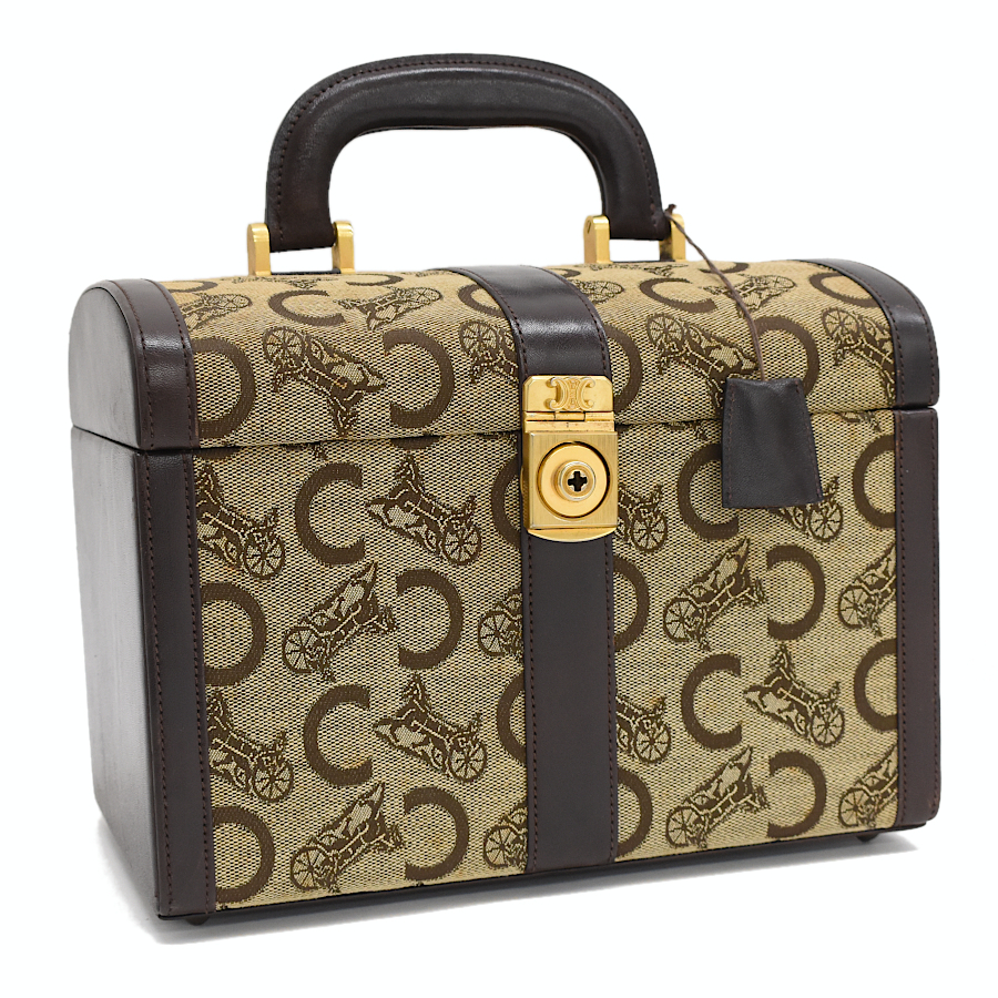 - セリーヌ バニティバッグ メイクボックス コスメティックケース ハンドバッグ Cマカダム ブラウン ベージュ CELINE