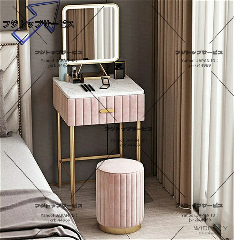 - ドレッサー 鏡台 化粧台収納 オシャレ LEDミラー 化粧テーブル 収納付き セット 幅60cm