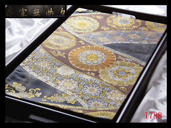 > I788厳選西陣 引き箔 振袖可 慶宴無曲文 黒色地 六通正絹純金糸高級美術袋帯 ◇検◇簪着物名古屋帯帯締め