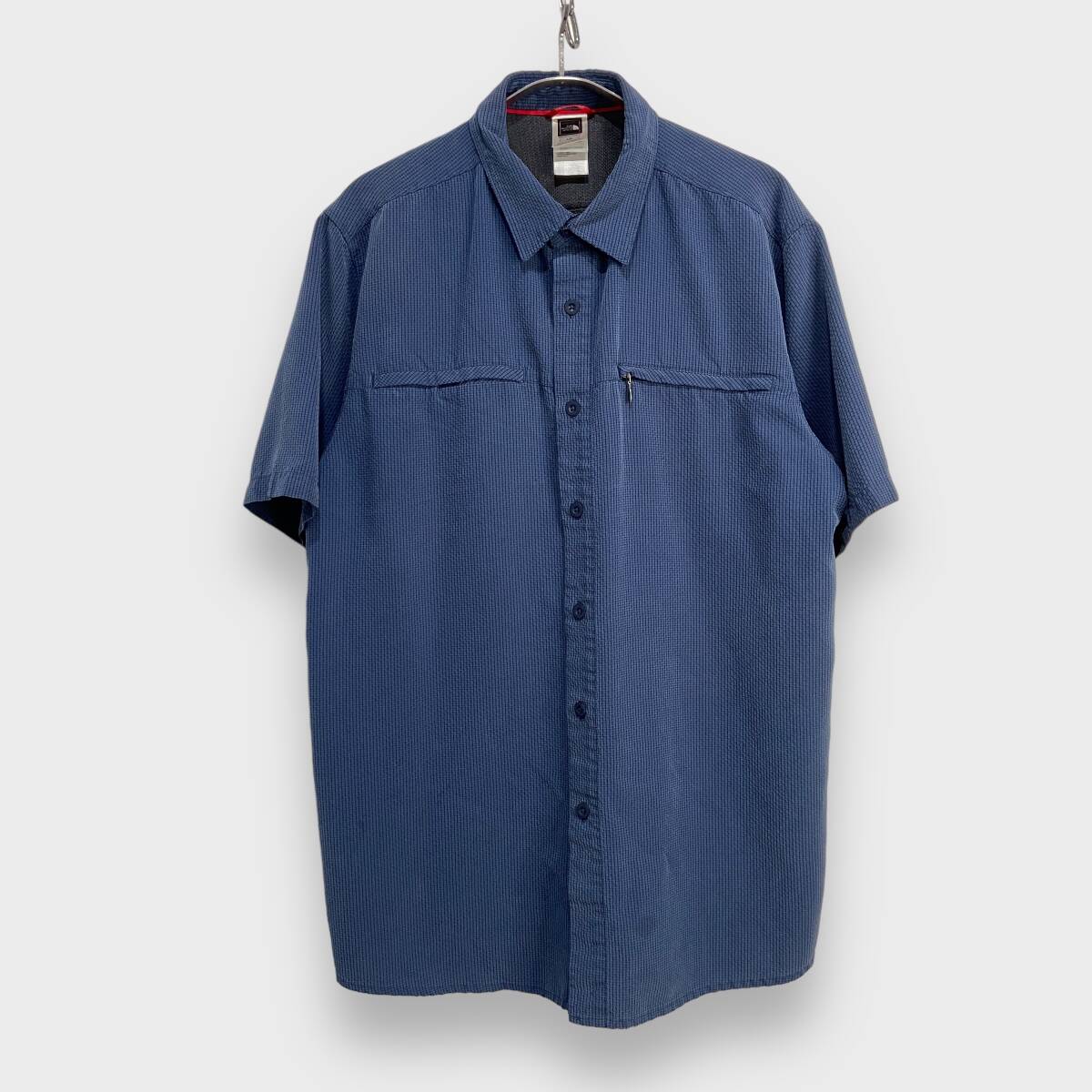 - 送料無料☆THE NORTH FACE☆モダールレーヨン半袖シャツ☆ネイビー☆格子チェック柄☆L☆G24M
