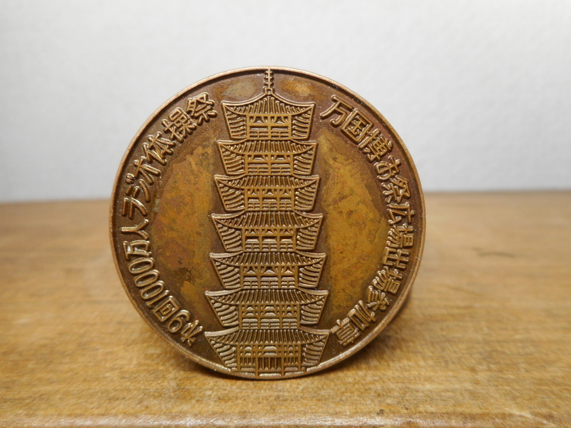 - 1000万人ラジオ体操祭 万国博お祭広場出場参加章 大阪万博 古河パビリオン バッジ 当時物