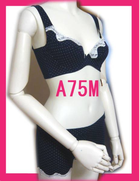- 新品即決@ネイビー@A75M@ブラジャー 一分丈ショーツ セット