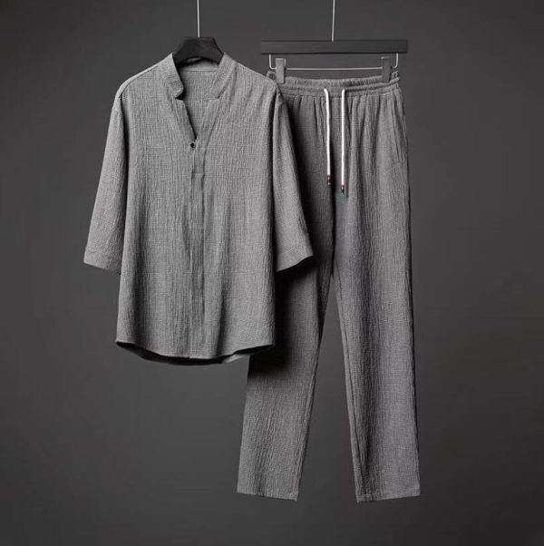 - 人気推薦 Tシャツ ロングパンツ パンツ メンズ ルームウェア 部屋着 涼しいセットアップ 上下セット / M-3XLサイズ選択可 グレー