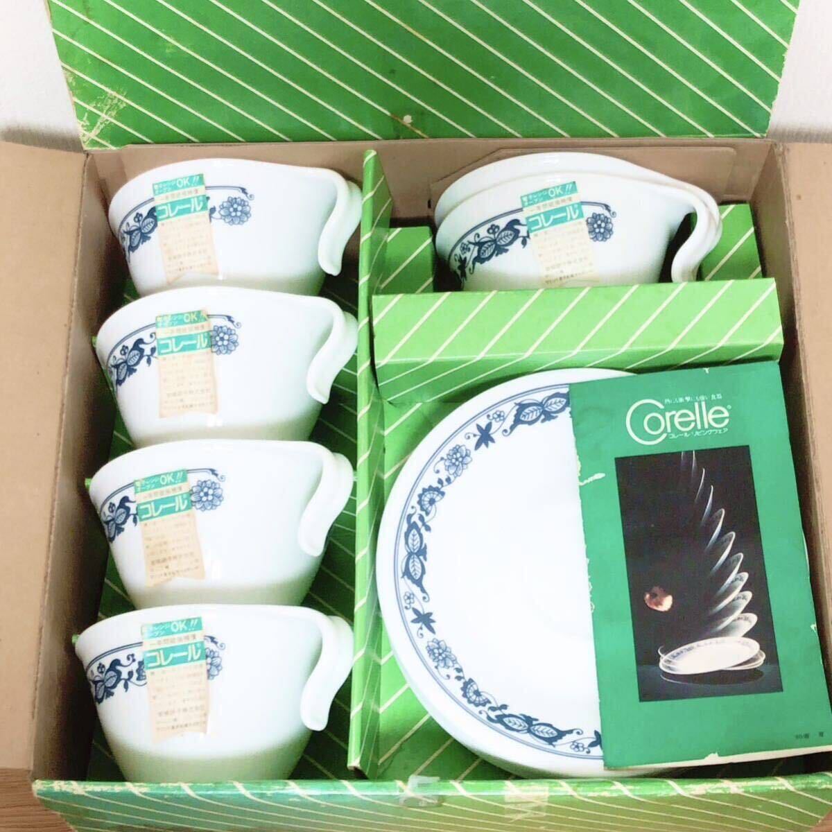 > 未使用 Corelleコレール Old Town Blue オールドタウン ブルー カップ&ソーサー スープ 6客 オールドコレール デッドストック