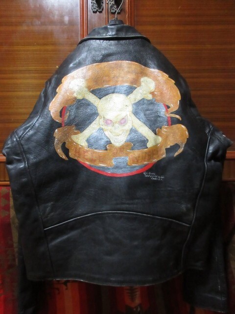 > 希少 UK イギリス ハンドペイント ドクロ スカル 80s 90s ビンテージ レザー ライダース ジャケット ■ ヘルズ エンジェルス ラロッカ PUNK