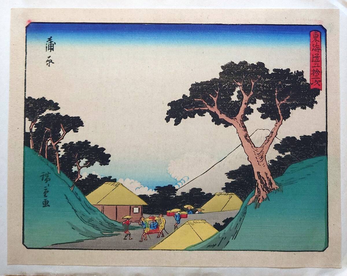 - f24040416〇彩色木版画 佐野喜版 狂歌入東海道五十三次 蒲原宿 広重 複刻昭和年代〇和本古書古文書