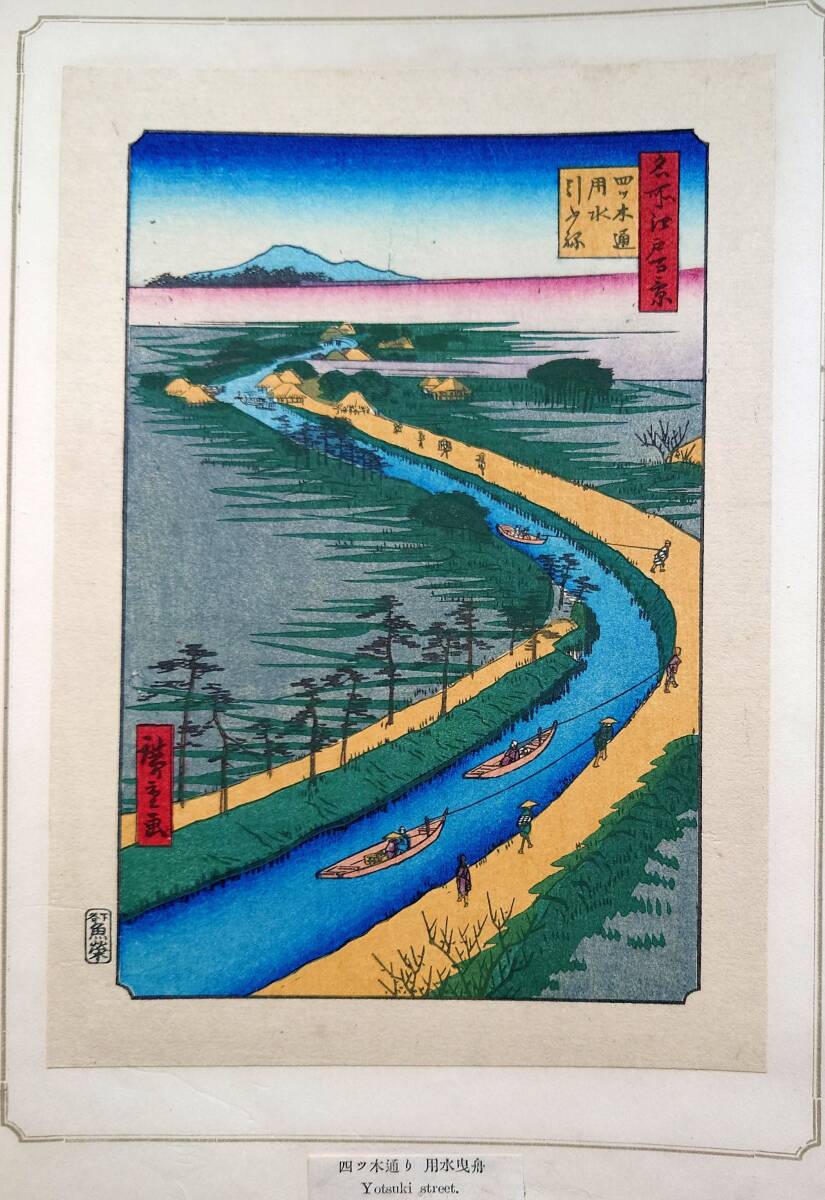 - f24080033〇名所江戸百景 彩色木版画 浮世絵 歌川広重 四ツ木通用水引ふね 複刻昭和年代〇和本古書古文書