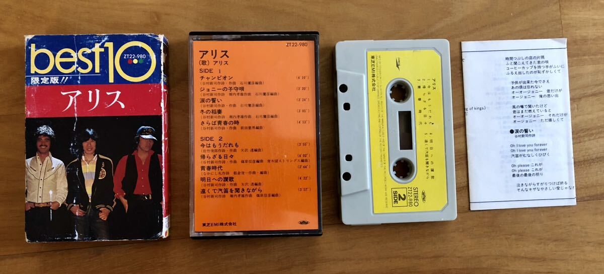 - 東芝EMI アリス ベストアルバム 限定版 カセットテープ ステレオ ZT22-980 ミュージックテープ 昭和歌謡 レトロ チャンピオン