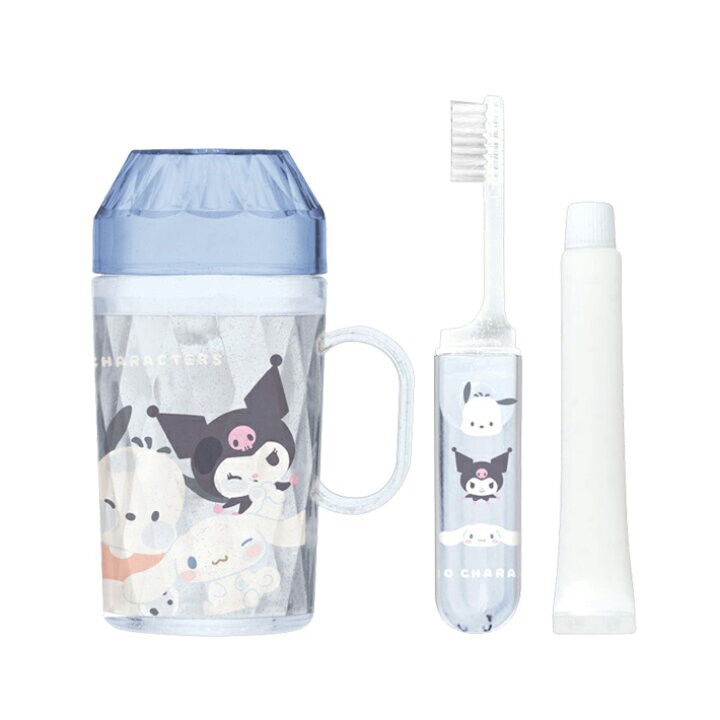 - サンリオキャラクターズ ダイカットはみがきセット サンリオむぎゅっと柄 ブルー 123151 サンリオ クロミ シナモロール ハブラシセット