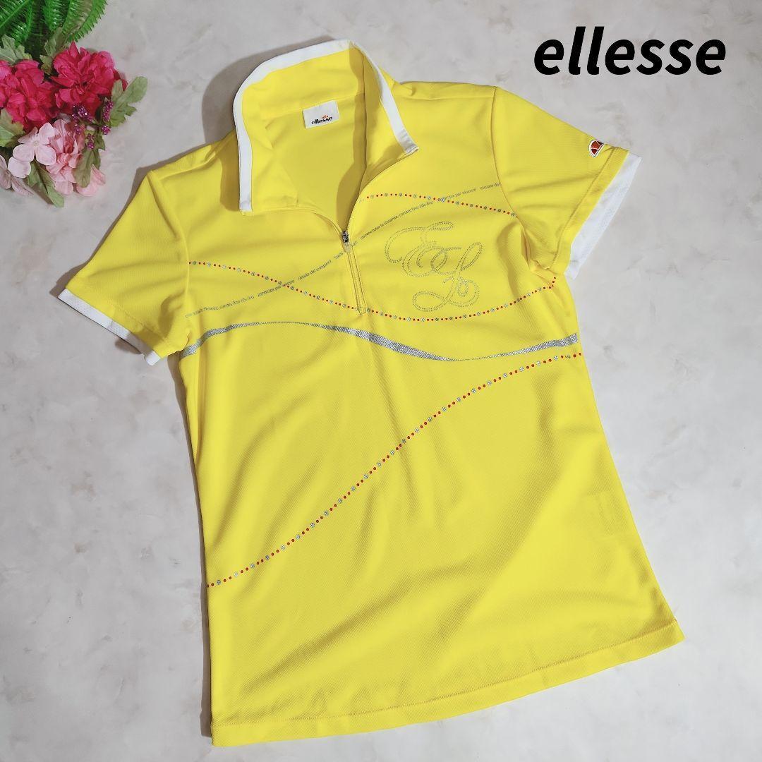 - ellesse ハーフジップ・速乾ドライ・半袖ポロシャツ 黄色イエロー テニス・バドミントンなど スポーツ 83417