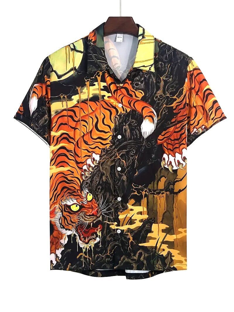 - 月夜×虎 和柄 アロハシャツ 034 半袖 シャツ ヤクザ ヤンキー オラオラ系 服 派手 メンズ ファッション ハワイアンシャツ 大きいサイズ