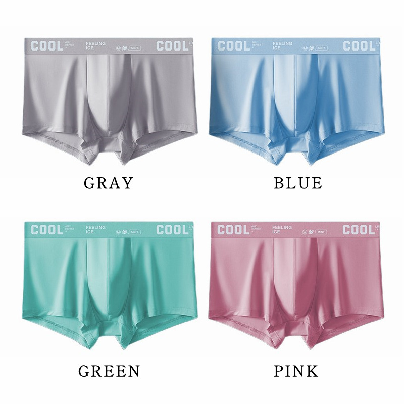 - 【COOL AIR SERIES+ 4枚組 66cm~76cm】暑い夏に最適★4色セット★清涼感抜群COOL アイスシルクボクサーパンツ 伸縮性・通気性・抗菌作用