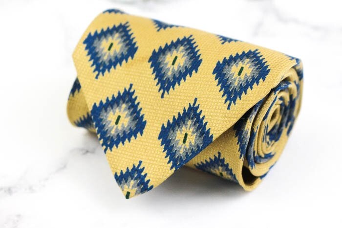 > ジョルジオアルマーニ エンポリオ 格子柄 小紋柄 幾何学模様 イタリア製 ブランド ネクタイ メンズ イエロー GIORGIO ARMANI