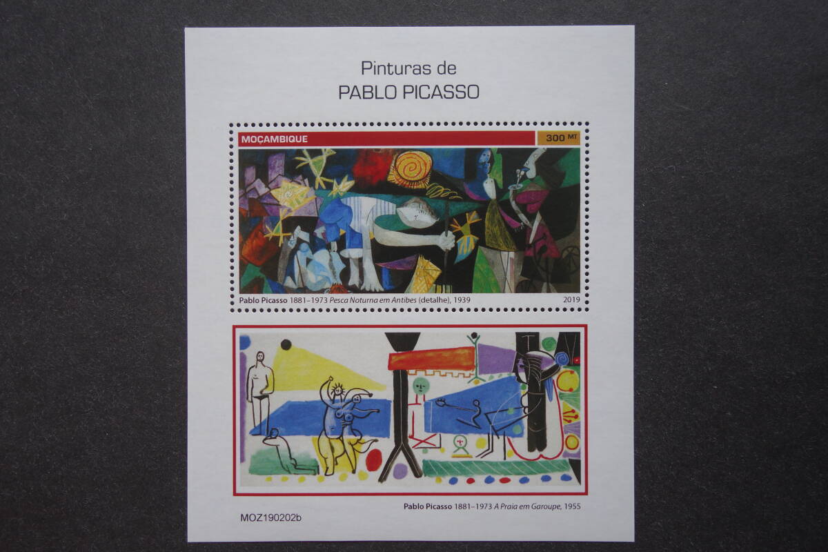 - 外国切手: モザンビーク切手「(画家)パブロ・ピカソの絵画」(印面:〈アンティーブの夜漁〉) 小型シート 未使用