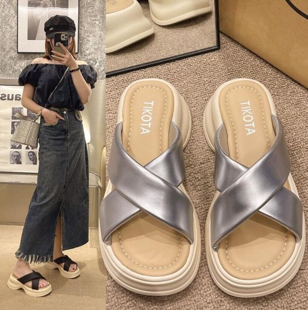 - 人気推薦 サンダル レディース 厚底サンダル ミュール スリッパビーチサンダル コンフォート軽量 美脚 歩きやすい 疲れない / シルバー