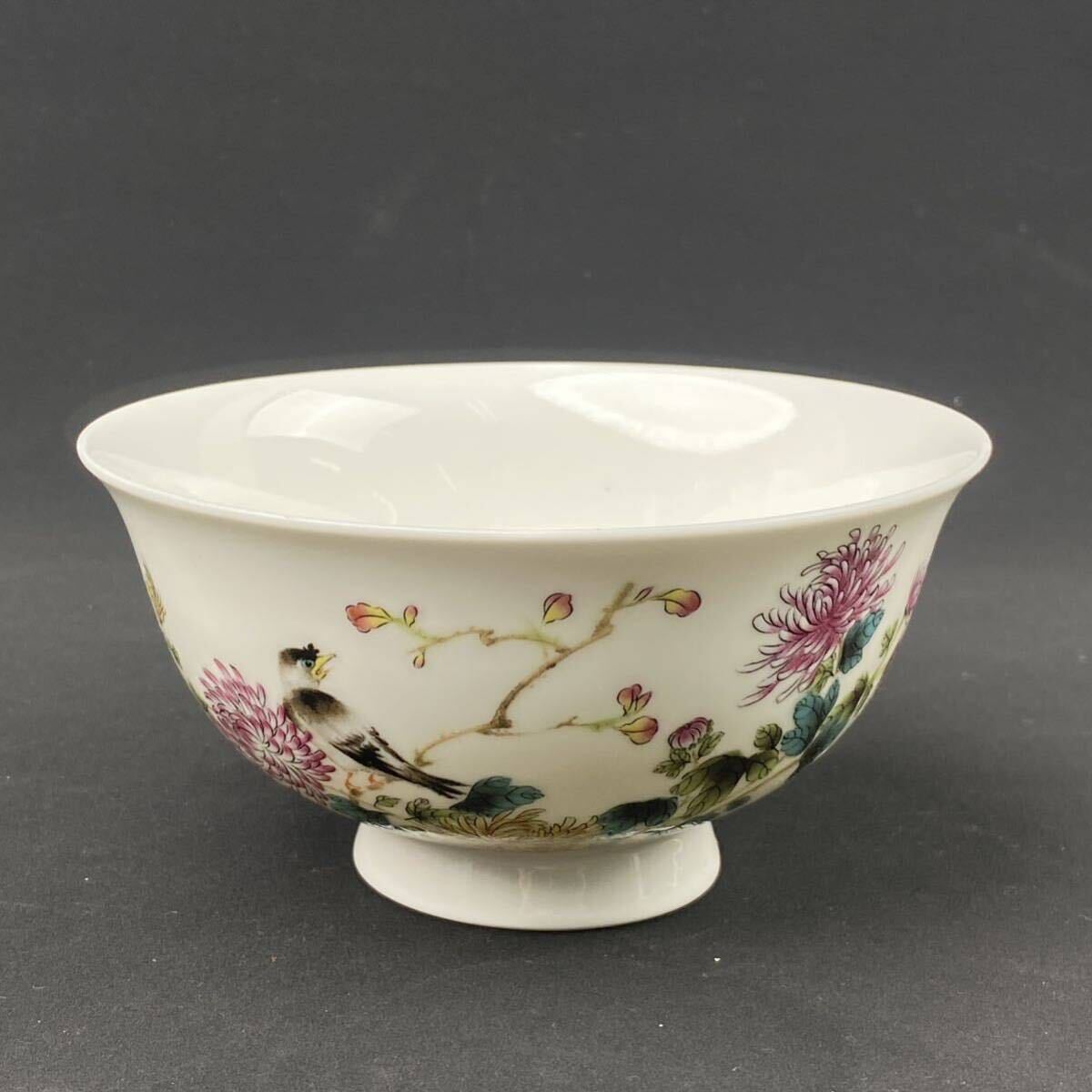 - 中国古美術 大清乾隆年製款 粉彩 茶碗 花鳥 茶道具 色絵 時代物 古賞物 陶磁器