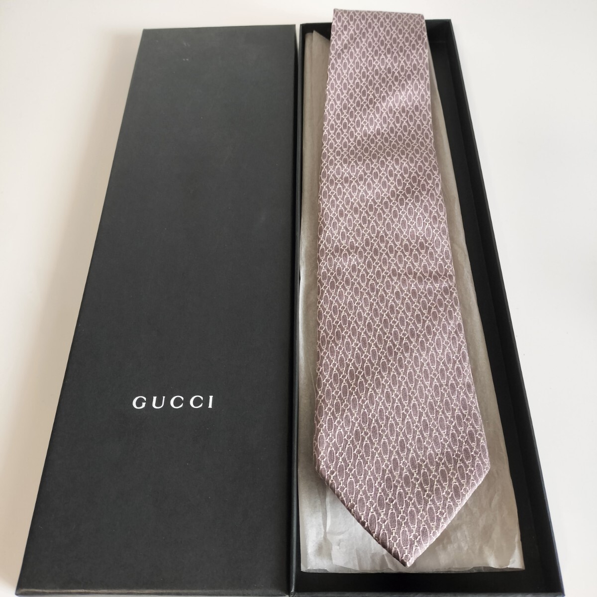- グッチ(GUCCI)薄ラベンダー細丸チェーンネクタイ