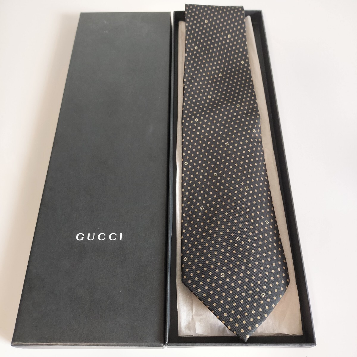 - グッチ(GUCCI)黒マイクロスクエア点々GGロゴネクタイ