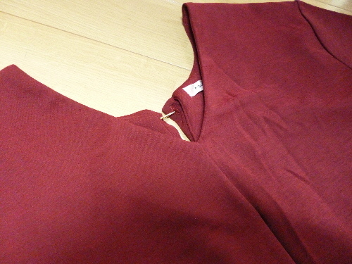 - 送料無料★アクアマリン・七分袖Vネックワンピース・エンジ系・M寸★未使用