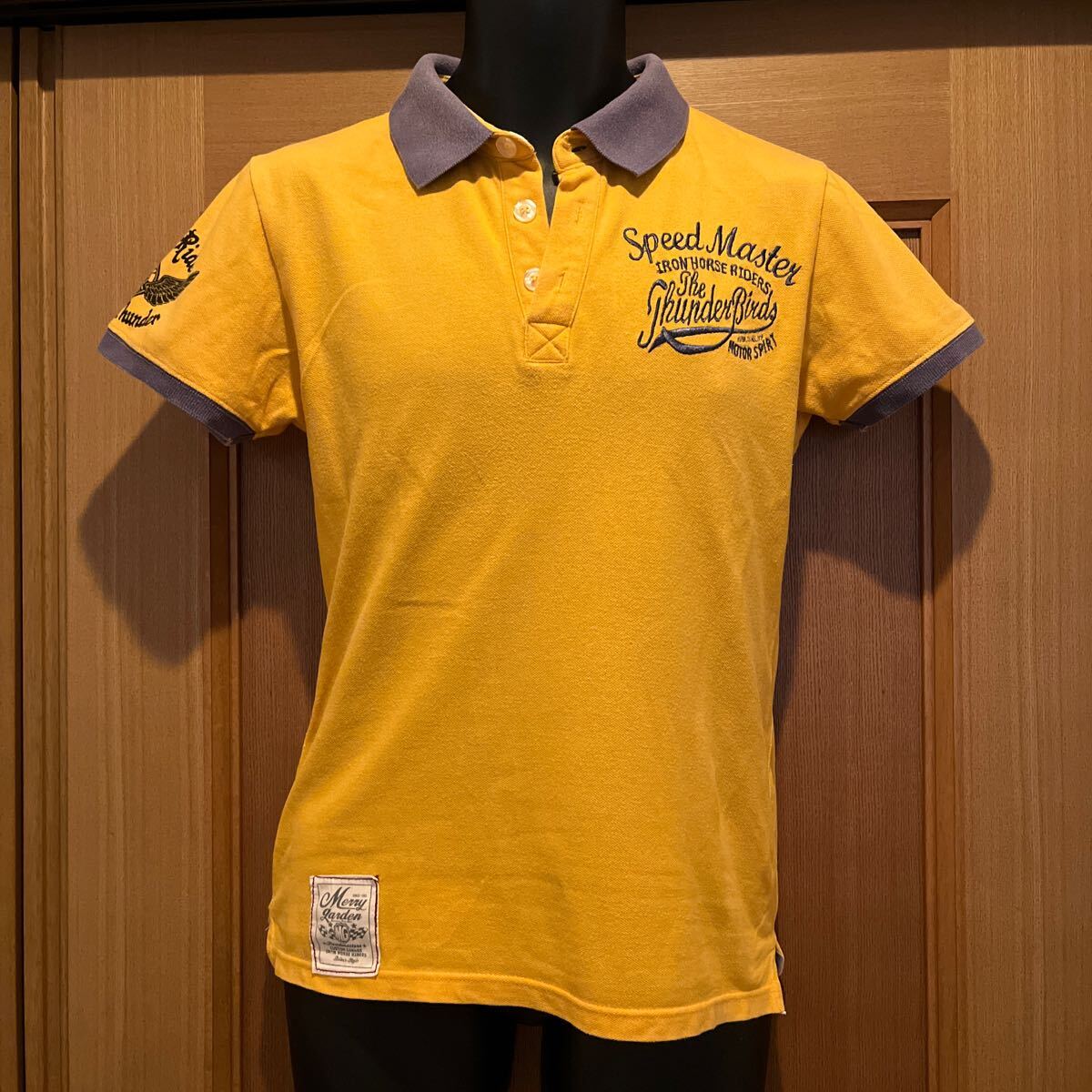 - モーターサイクル MERRY GARDEN Mサイズ 黄色 イエロー Tシャツ 半袖ポロシャツ ポロシャツ レース ビンテージ 90年代 バイク