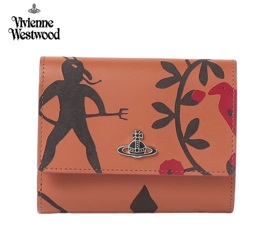 > ○★新品未使用 Vivienne Westwood (ヴィヴィアンウエストウッド) CLOWN PRINT 口金付二つ折り財布 ブラウン系★○