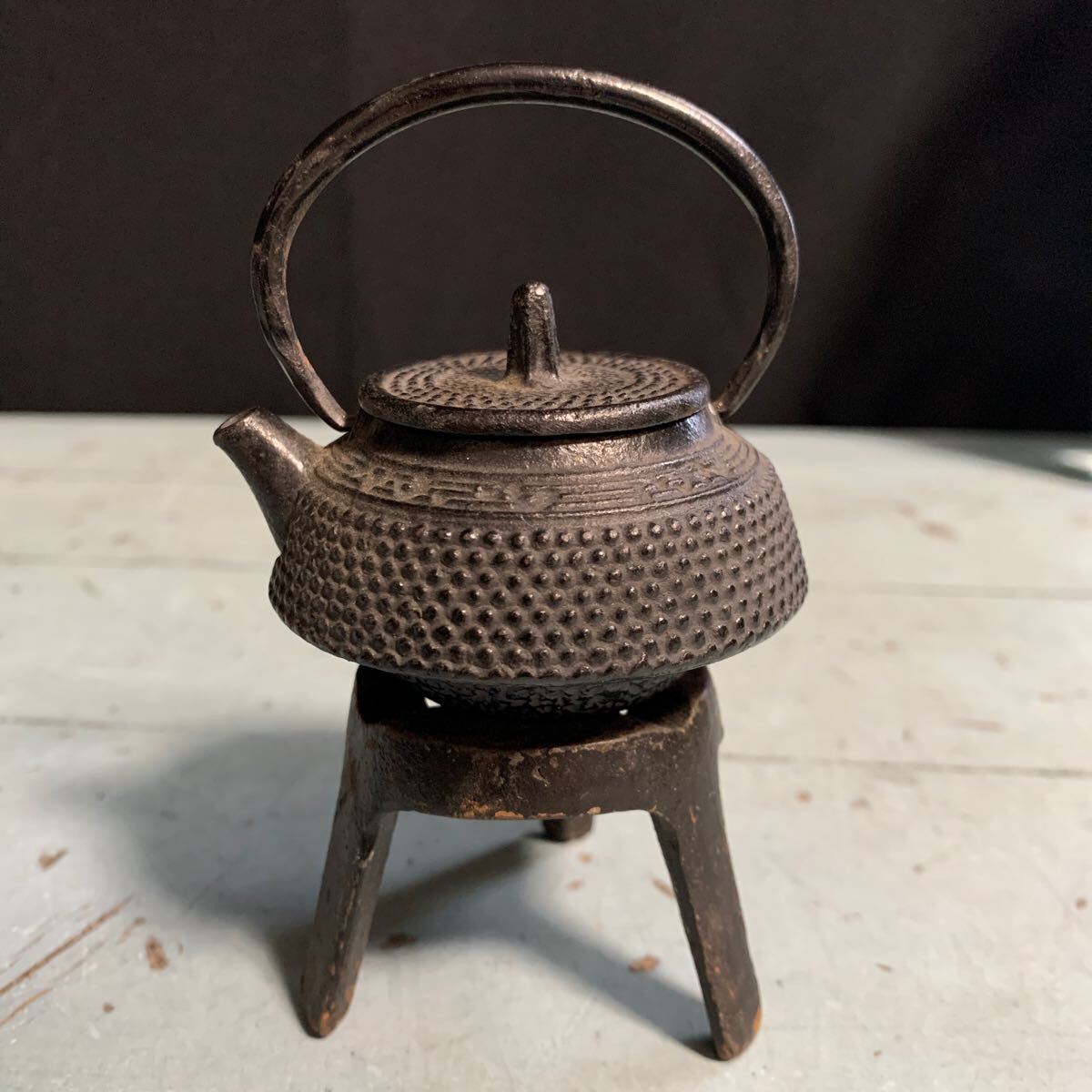 - ミニ鉄瓶 飾り 置物 美術品 雑貨 ミニ鉄瓶 コレクション 金属工芸 急須 茶道具 茶器 水滴 書道 五徳 (A-300)