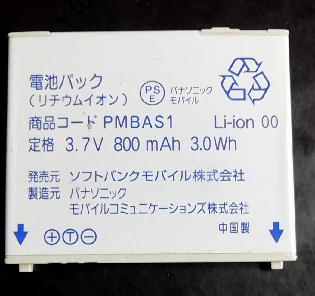 > 【中古】ソフトバンクPMBAS1純正電池パックバッテリー【充電確認済】対応機種(参考)001P/002P/103P/941P/940P/930P/931P