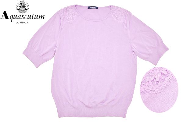 - Y-7872★送料無料★美品★Aquascutum アクアスキュータム (株)レナウン★レディース 日本製 紫 レース 半袖 サマーニット カットソー M