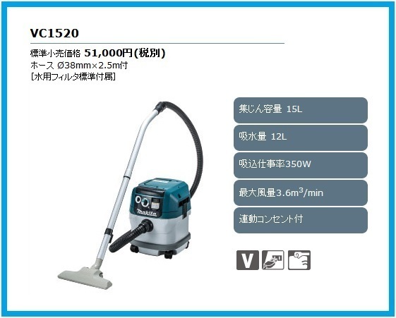 - マキタ 乾湿両用集塵機(集じん容量15L) VC1520 [連動コンセント付]■安心のマキタ純正/新品/未使用■