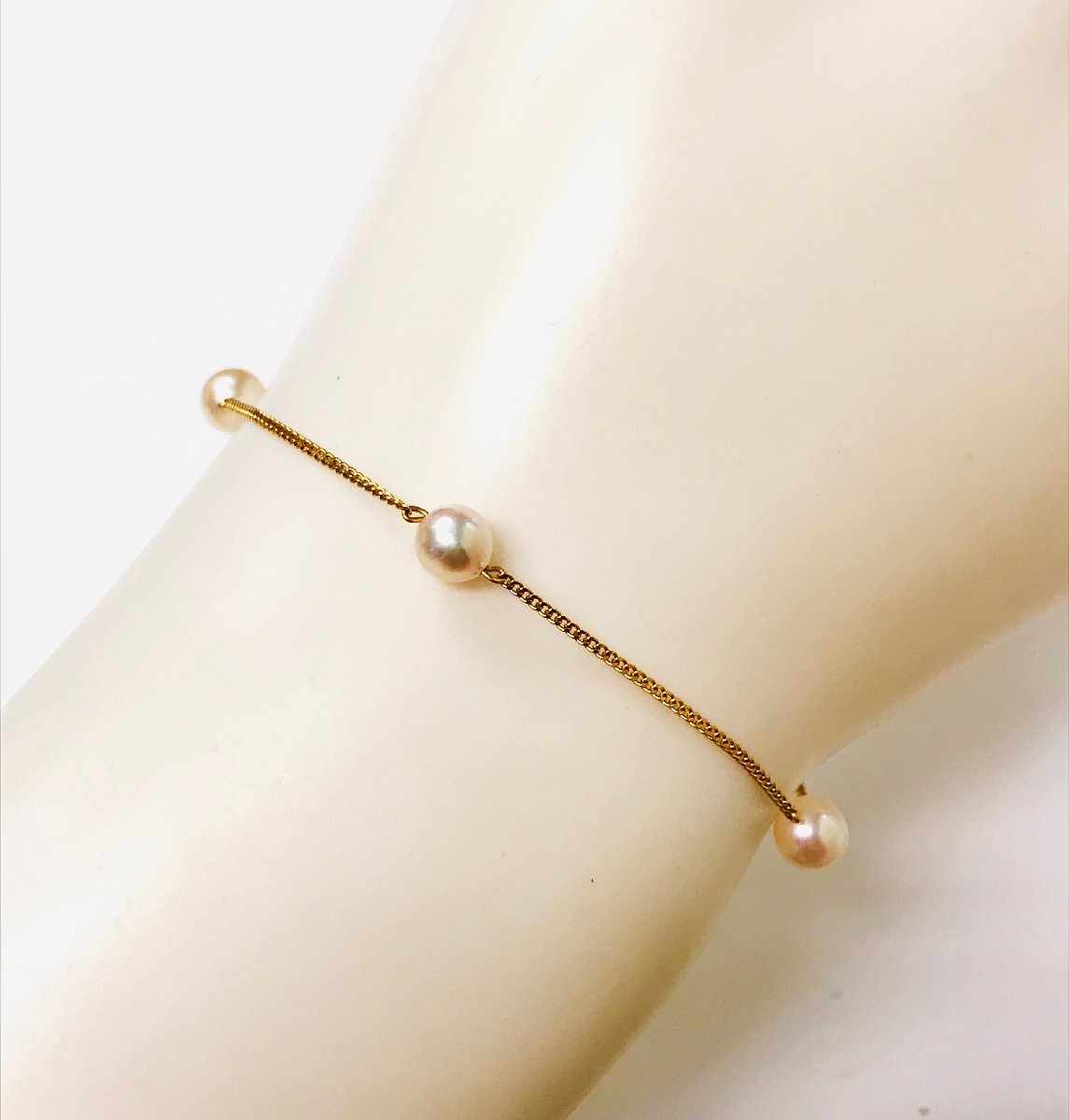 - K18 ゴールド パール付きチェーンブレスレット qoj.YPS04