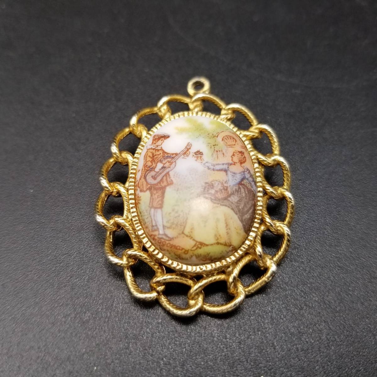 - 古典 絵画 ヴィンテージ ペンダント チャーム レトロ コスチュームジュエリー 楕円 TJE1