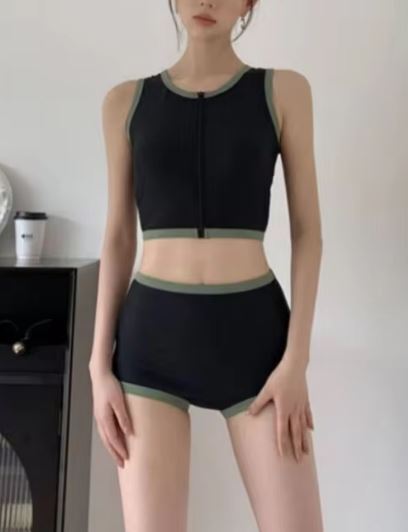 - 【M 42.5-50kg】※カラー04※韓国-女性用の分割ビキニ,ひもパンティー付きの黒のツーピース水着,学生,ハイウエスト,休暇,ビーチウェア