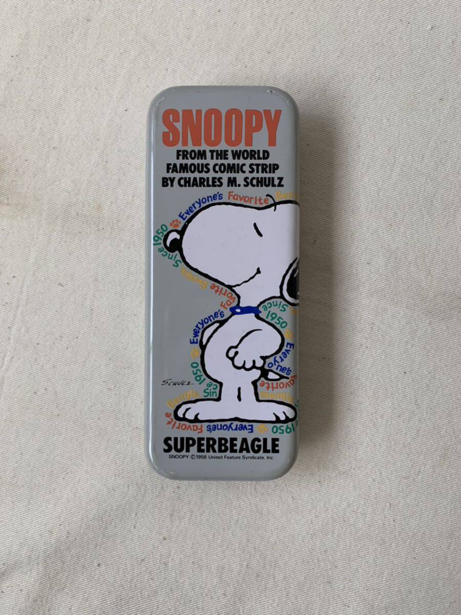 - 当時物 スヌーピーの缶ペンケース サンリオ昭和レトロ日本製筆箱収納インテリアディスプレイアンティークビンテージ小物入れコレクション