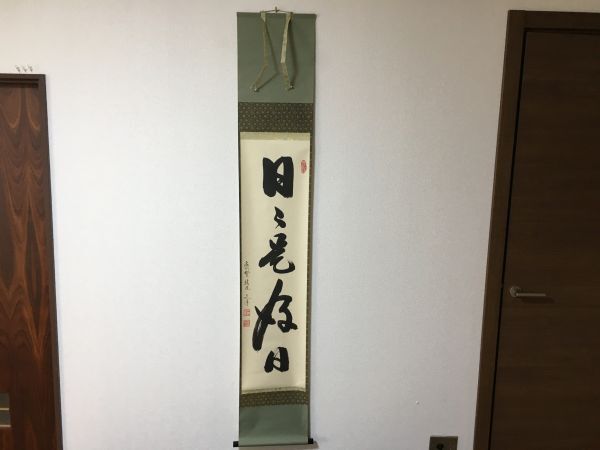 - 【雪華】☆年中使い☆ 大徳寺龍源院 東 文洋 一行 日々是好日 共箱 掛軸 茶掛 茶道具 【 表 裏 千家 而妙斎 即中斎 鵬雲斎 坐忘斎 】