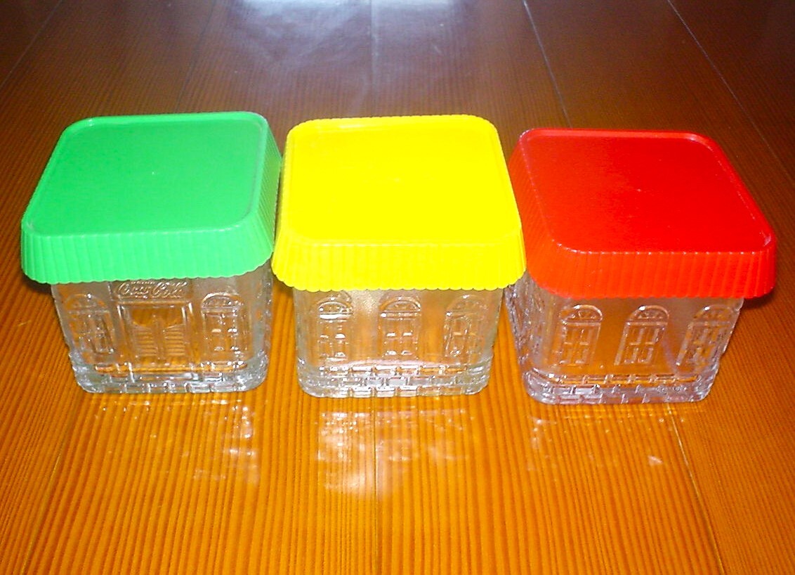 - 新品 コカ・コーラ ハウスポット 3色3個セット 外箱なし 本体ガラス製 上蓋プラスチック製