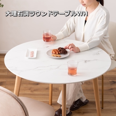 > ダイニングテーブル ラウンドテーブル 大理石調 おしゃれ 幅90 ラウンドテーブル 円形 丸型 2人用 丸テーブル 食卓 TAP-201 WH