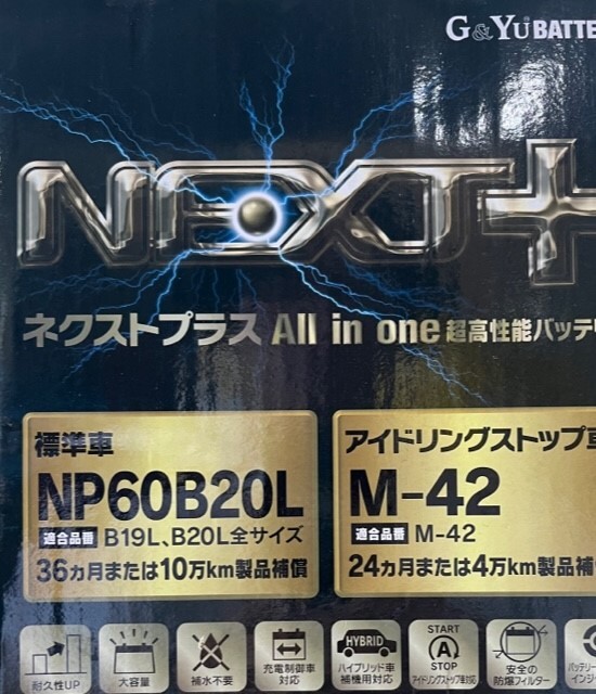 - 【送料込】G&Yu製 M42/60B20L NEXT+【アイドリングストップ車対応】☆☆☆