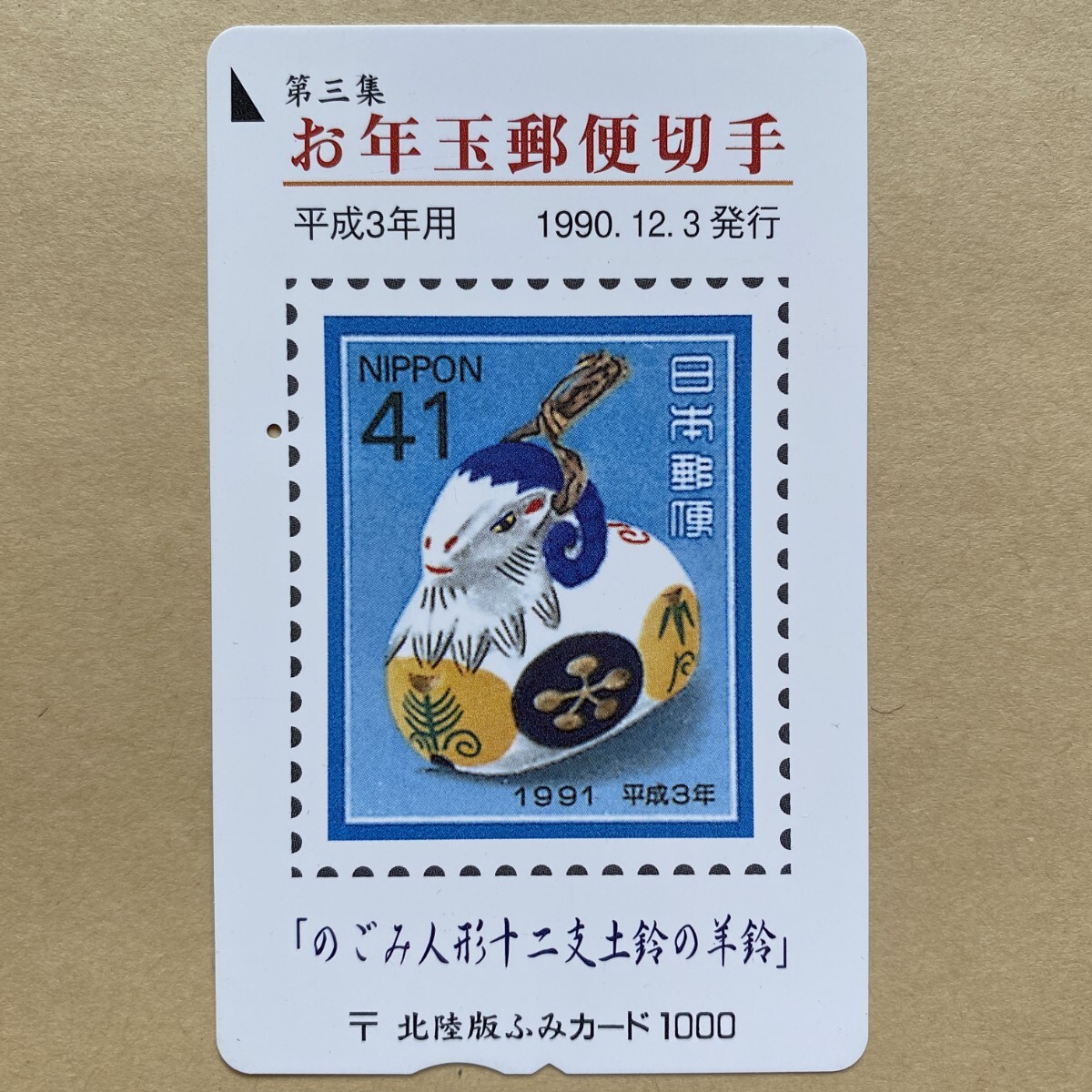 - 【使用済】 ふみカード 北陸版 第三集 お年玉郵便切手 平成3年用 1990.12.3発行 「のごみ人形十二支土鈴の羊鈴」